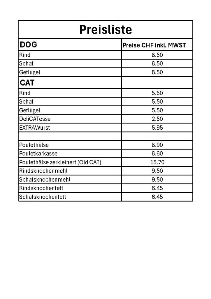 Die Preise gültig ab 20.10.2025 für Hunde- und Katzenfutter PRIMAFU finden Sie unten: